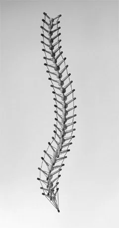 Below that is a model of a spine someone made where, instead of the “vertebra” applying compressive force one on top of the other, they exist in a similar dynamic tension without even touching.